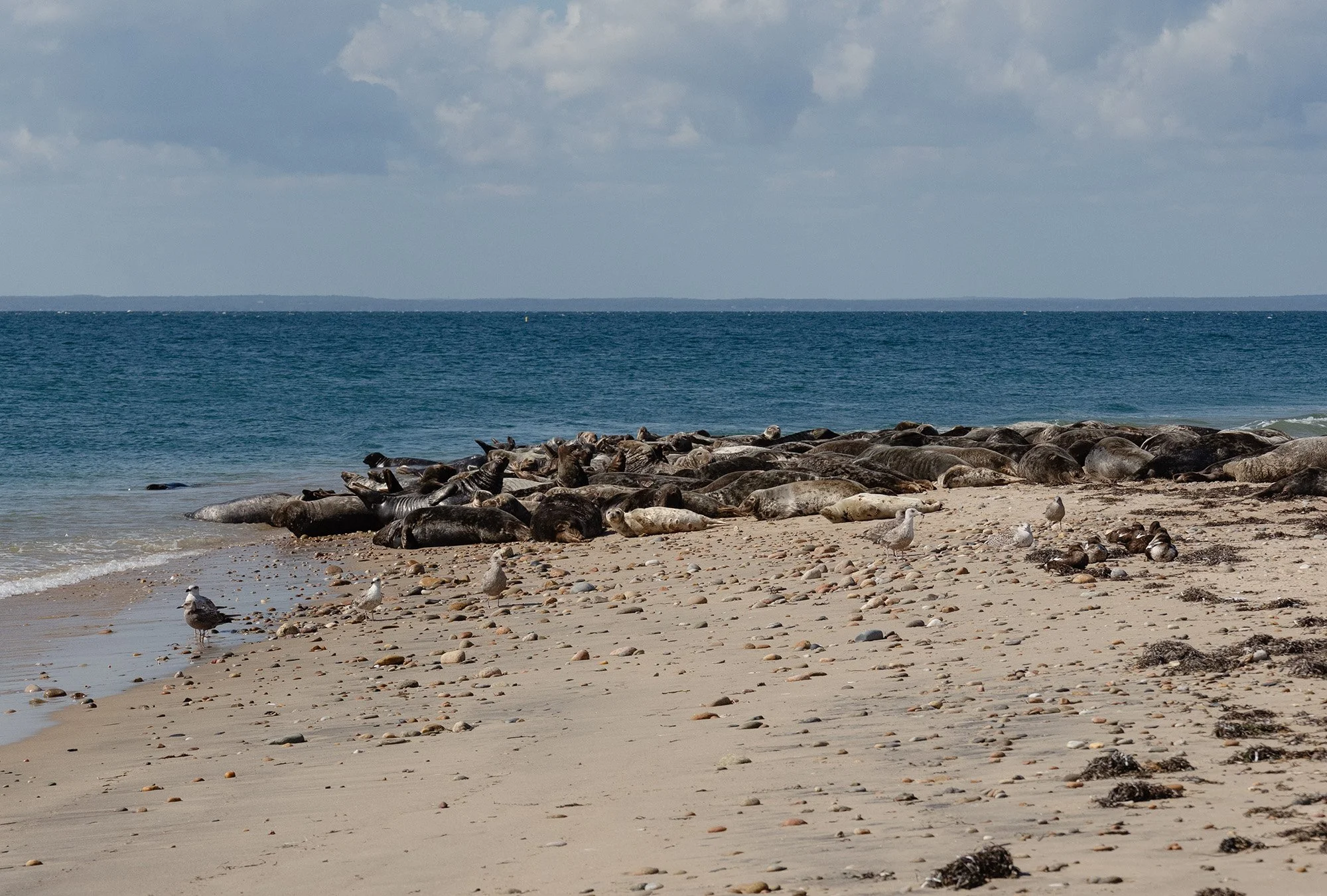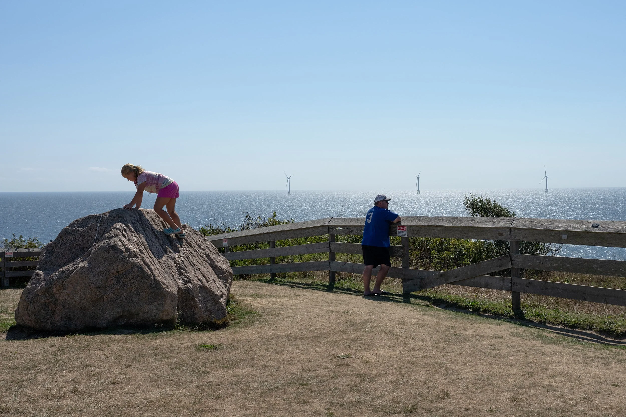 Visitors look out at the Block Island Wind Farm roughly three miles offshore.