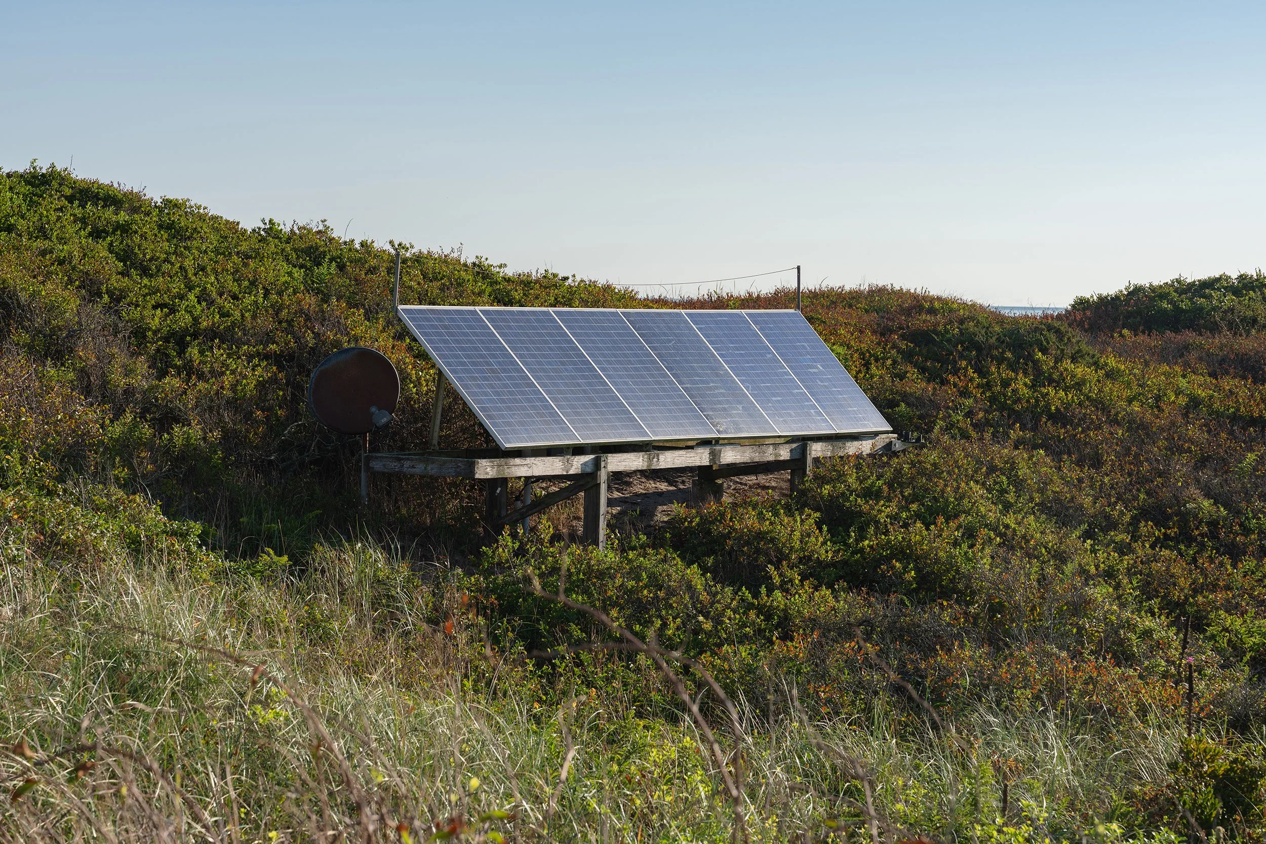 Solar panels by the Southeast Lighthouse on Block Island. Residents say support for wind is part of an ethos of conservation on the island.