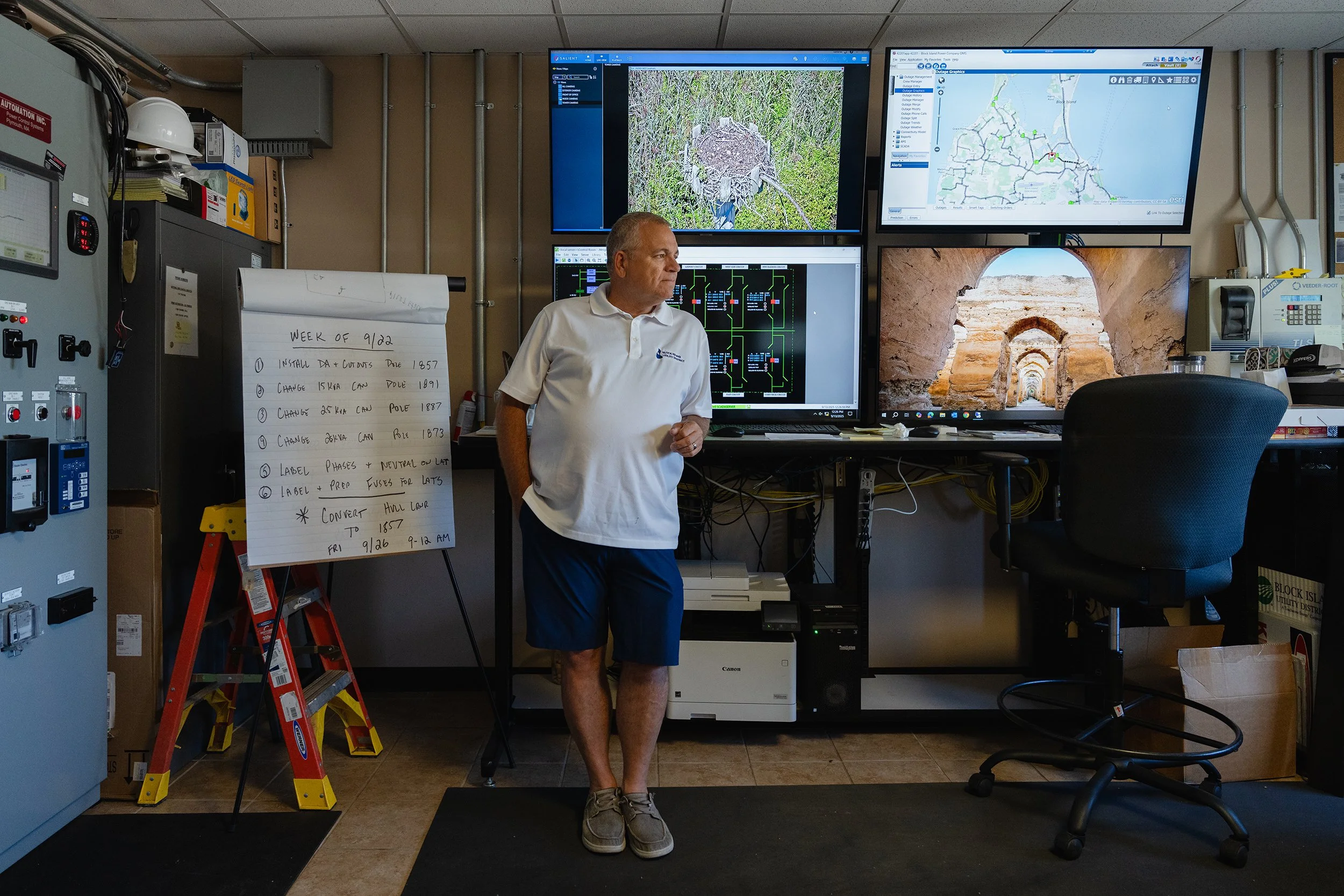 Jeff Wright, president of the Block Island Utility District, poses for a portrait in the generator control room.